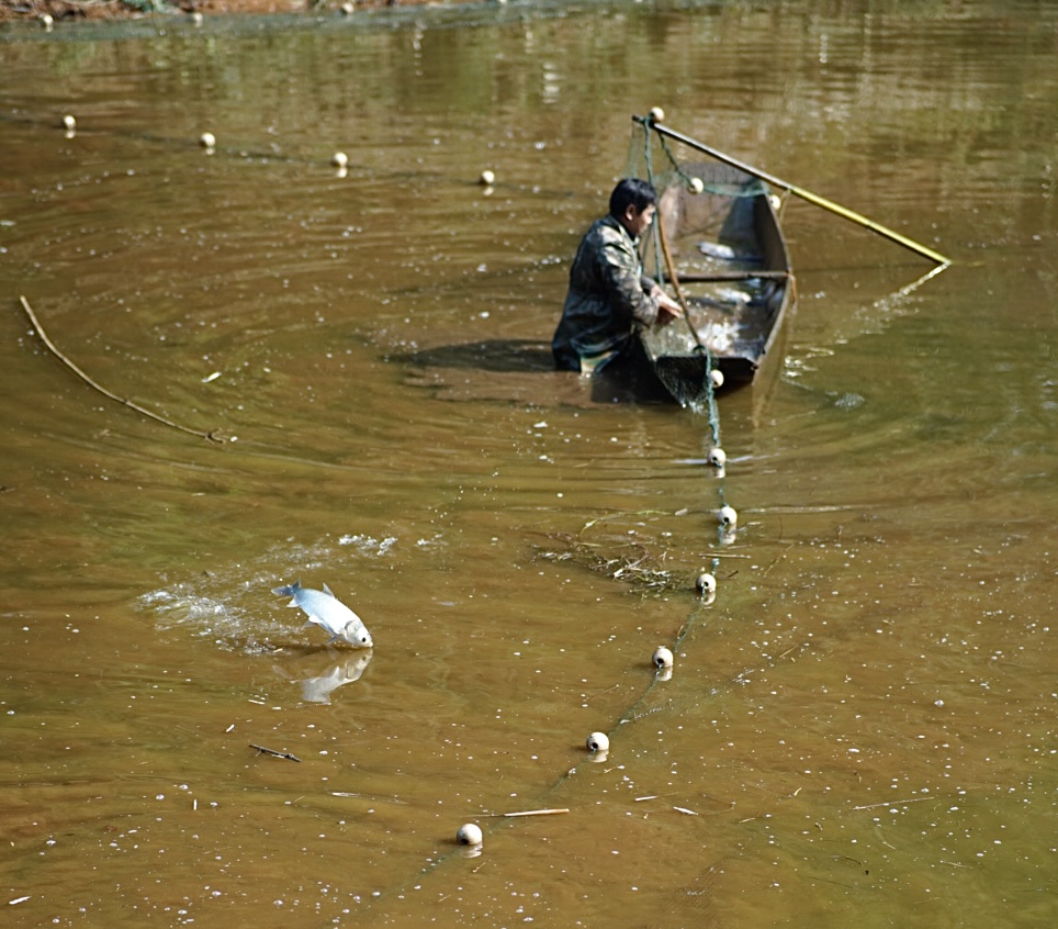 正在围网的渔民
